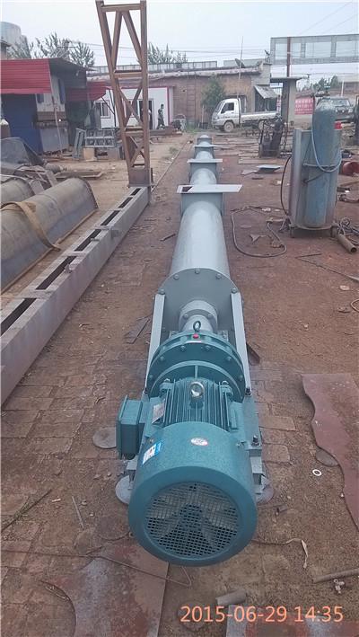 雙軸螺旋輸送機其原理是在兩條無縫鋼管內分別裝有一根實體螺旋,其中一根是左旋,另一根是右旋。