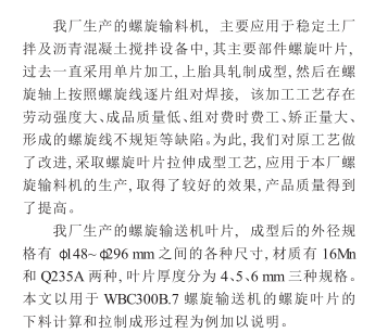 螺旋輸送機的螺旋葉片有實體螺旋面、帶式螺旋面和葉片螺旋面三種形式,其中,葉片式螺旋面應用相對較少,主要用于輸送粘度較大和可壓縮性物料,這種螺懸面型,在完成輸送作業過程中,同時具有并完成對物料的攪拌、混合等功能。